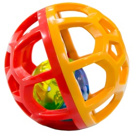 Homokórás puha labda, vegyes színekkel! A Csörgő labda homokórával bébijáték egy puha golyó, ami színes szálakból és egy csörgő golyókkal készült homokórából áll. A labda különféle mintájú zörgő gyűrűkkel van borítva, amiket a pici rágókaként is tud használni. A Csörgő labda homokórával bébijáték fejleszti a baba finommotoros mozgását, a tükörben megismerkedhet az önképével, a zörgő hangok kacagásra ingerlik! A Csörgő labda homokórával bébijáték átmérője: 16 cm.